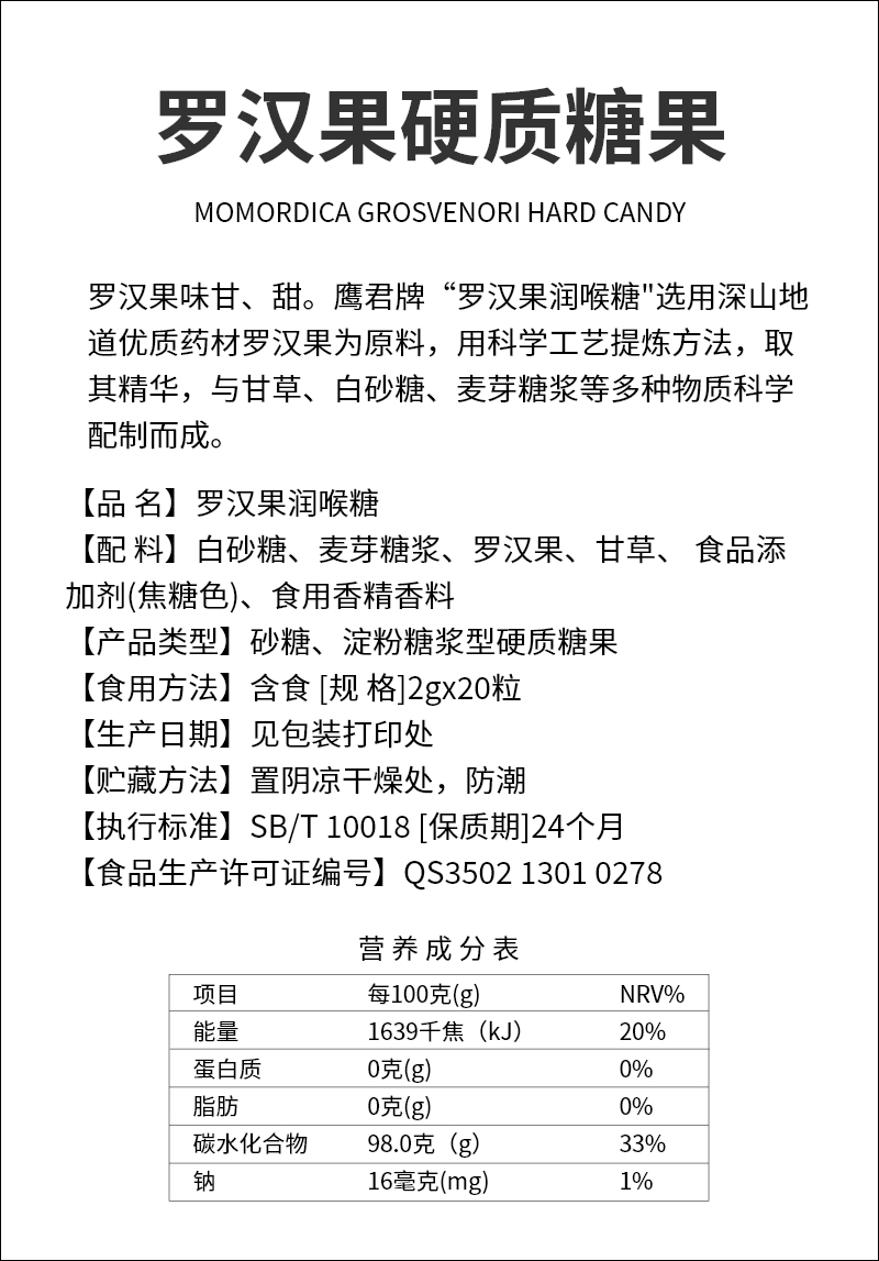 罗汉果润喉糖(纸盒)
